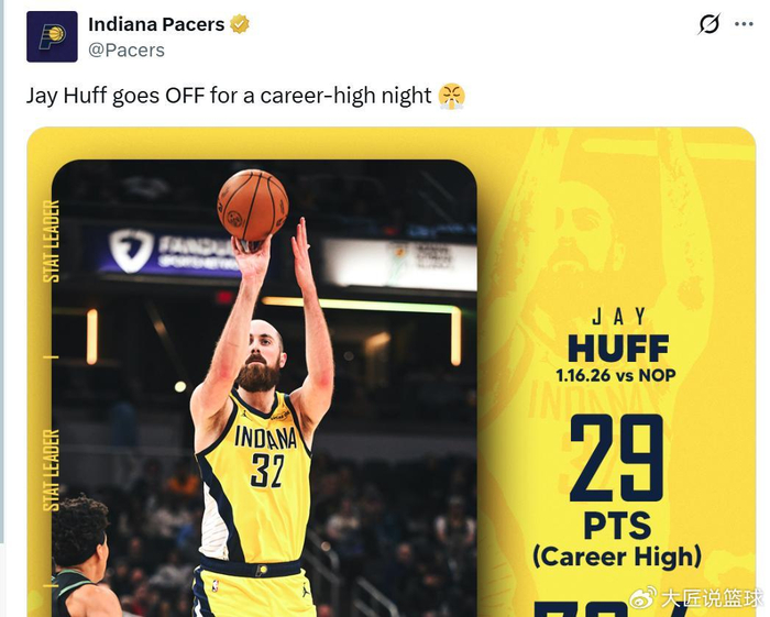 而正负值排在全场第一的球员是步行者首发内线赫夫,本场他再度交出攻防俱佳的表现。